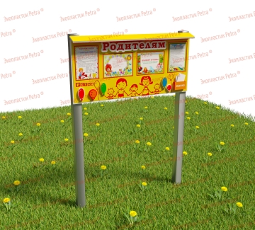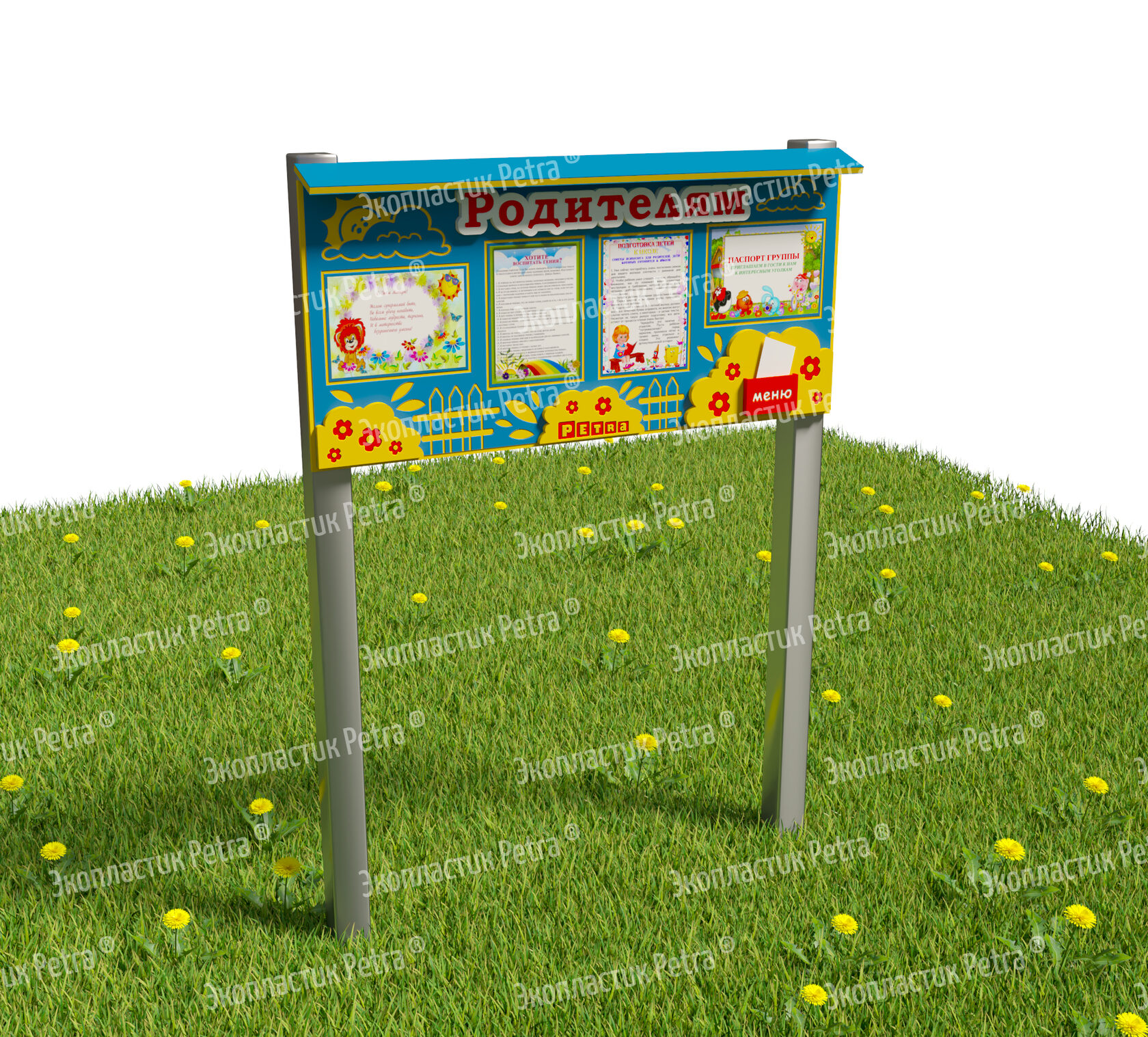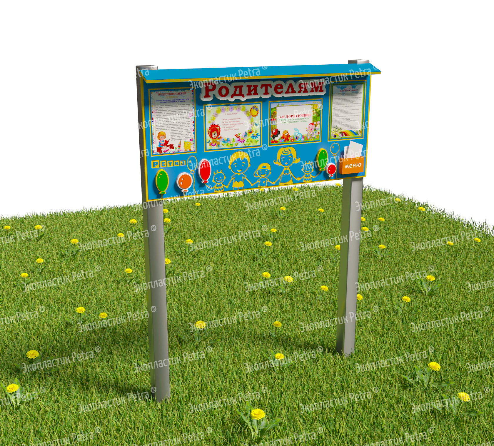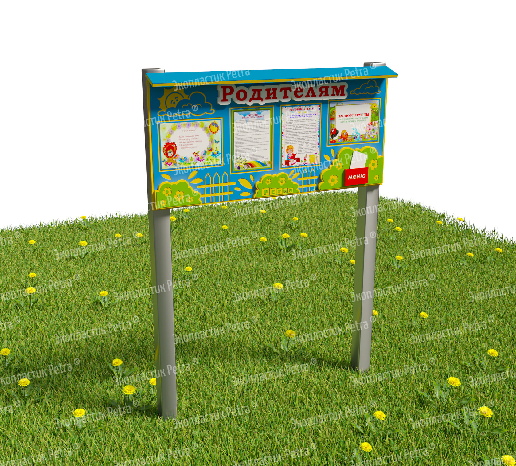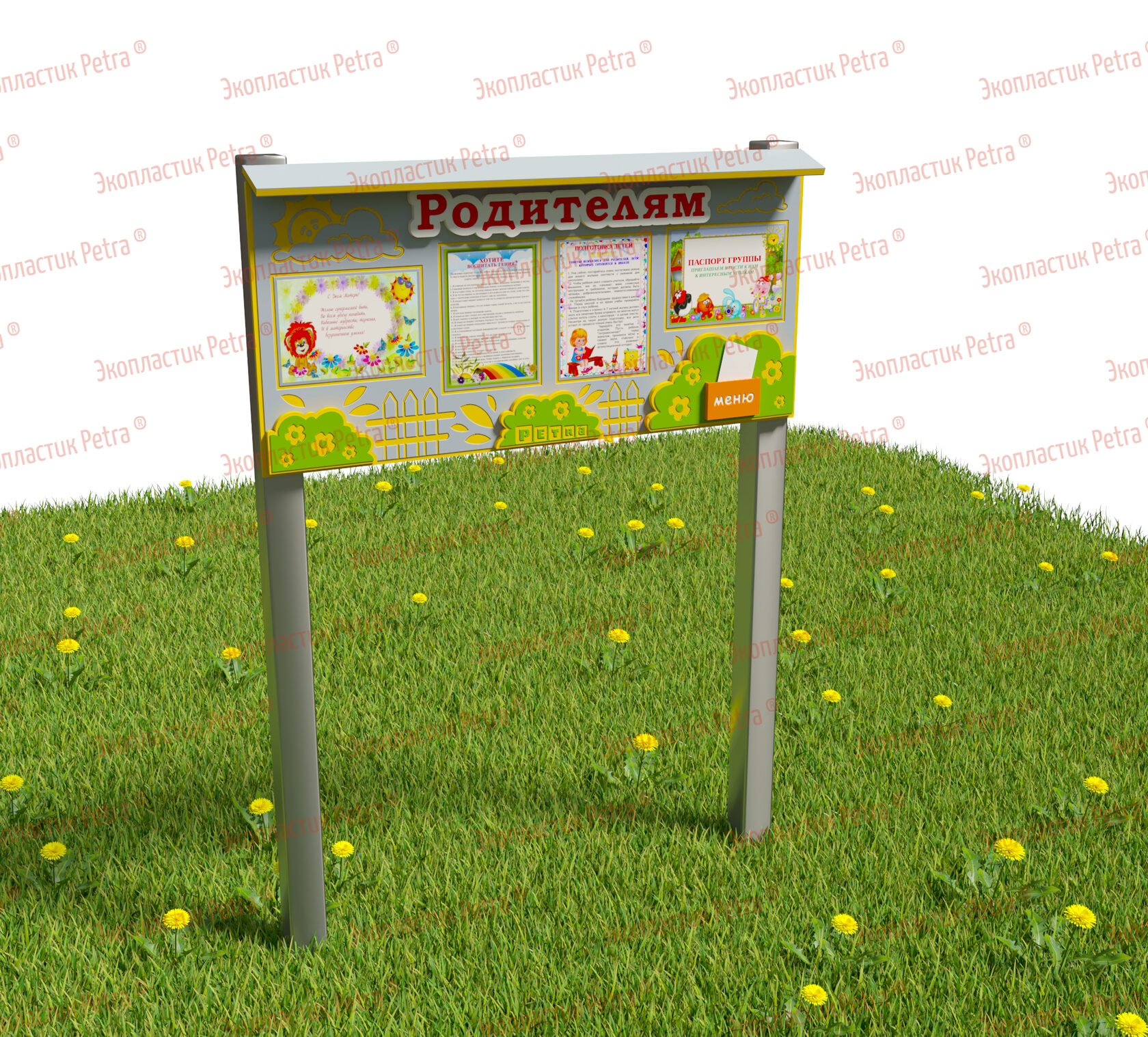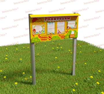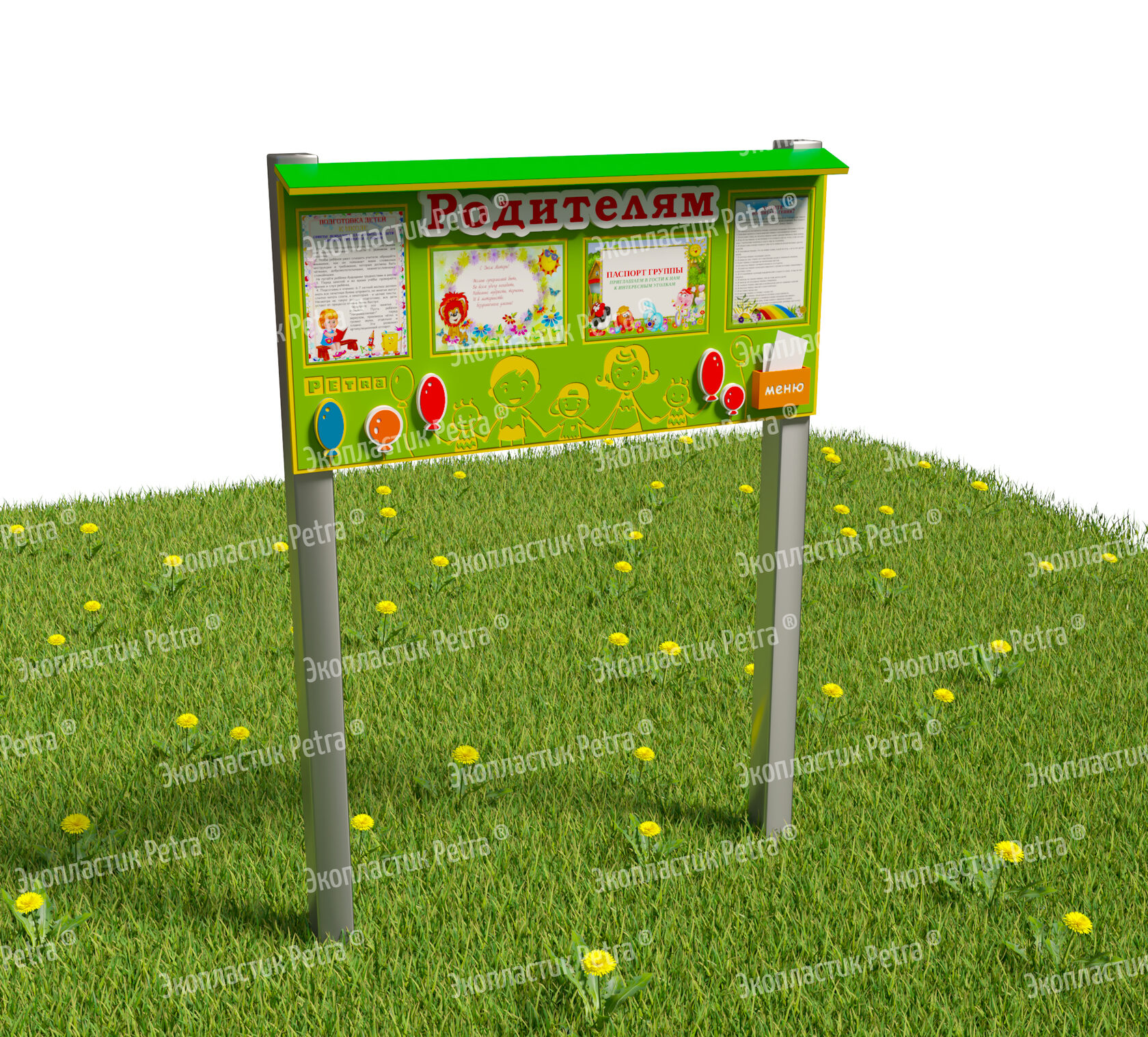 #nbsp;Уютное образовательное учреждение начинается с уютных деталей. Вот такие очаровательные стенды для информирования родителей станут буквально центром притяжения взрослых и детей! Они яркие, а ещё и прослужат бесконечно долго…. Но обо всём по порядку :) На красочных стендах можно прикрепить сразу несколько объявлений с важной информацией для родителей, есть небольшая полка для размещения печатных листов с публикацией меню детского питания на день. Есть также модели с дополнительными элементами: с декоративной вертикальной клумбой для цветов, которые детишки смогут посадить сами (важный элемент экологического воспитания), и с контейнером для хранения игрового инвентаря – лопат, грабель, ведёрок и т.д. Но такие стенды будут интересны не только родителям и педагогам, но и юным непоседам. Они украшены красочными объёмными фигурами, которые можно трогать. А ещё сами рисунки на стендах рельефны, так как наносятся на изделие методом гравировки. Прикосновения детских пальчиков к таким разнофактурным элементам активно развивают мелкую моторику. Стенды выполнены из Экопластика Petra ® и нержавеющей стали, а это значит, что воспользоваться этим изделием сможет не одно поколение родителей в ДОУ.