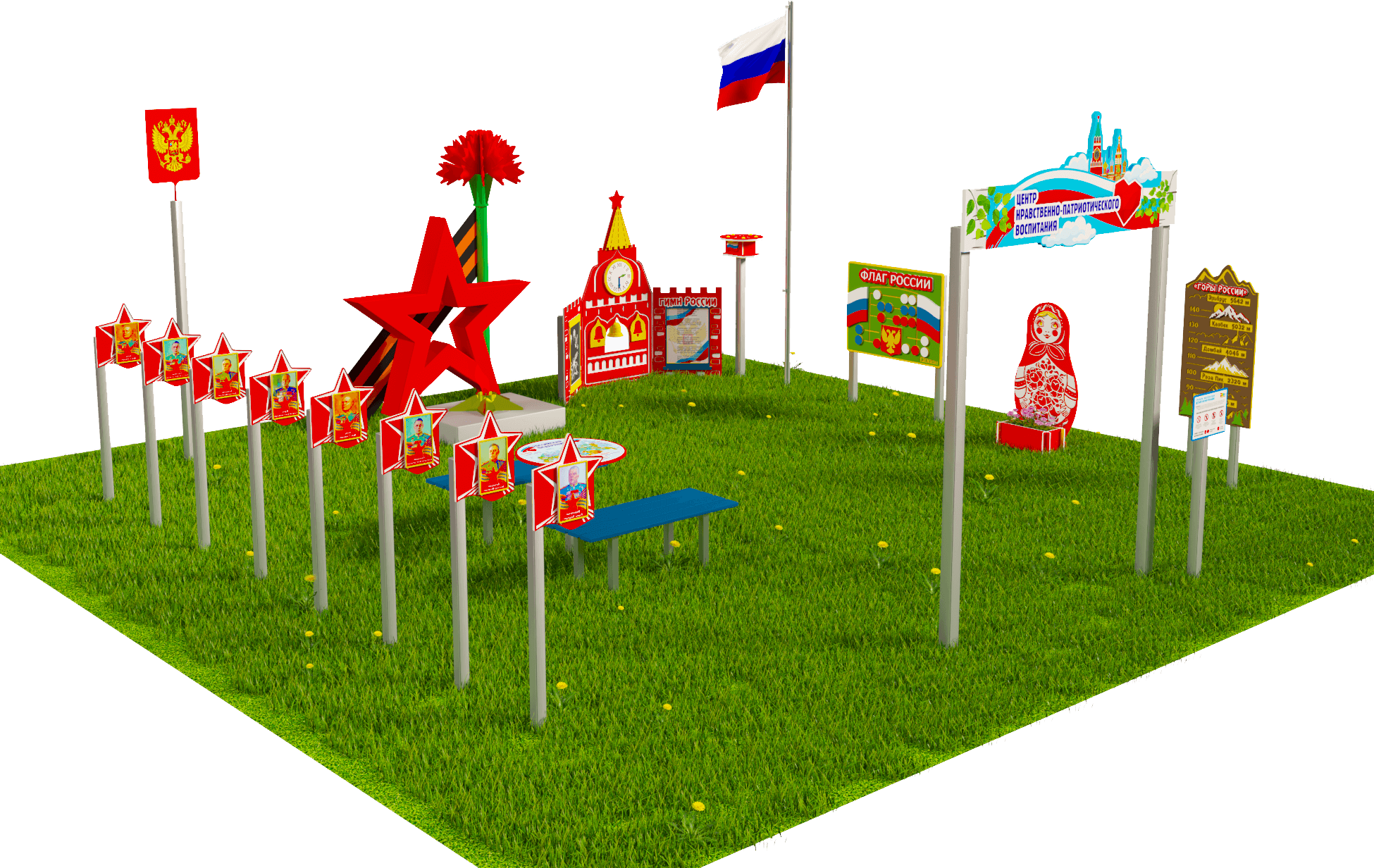 Все элементы «Патриотической площадки» выполнены из качественных и безопасных для детей материалов. Имеют конструкции, защищающиеот возможных травм;